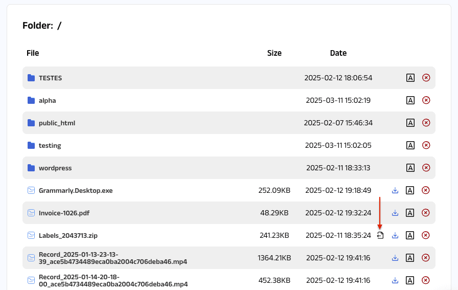 Navigate to the File Manager page, then scroll down and locate the ZIP file you want to extract.
