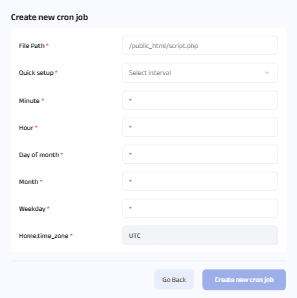 Fill in the information based on your needs, then click “Create New Cron Job” in the bottom-right corner of the popup.