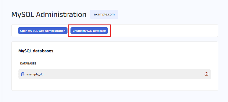 To create additional databases, click the same “Create MySQL Database” button and repeat the process for each new database you want to add.