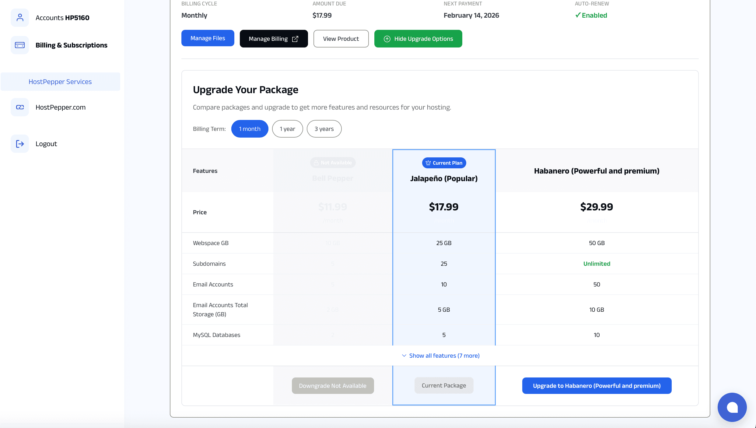 These memory limits apply equally across all billing cycles (1-month, 12-month, and 36-month plans). If you need a higher memory limit, consider upgrading to a higher-tier package through your control panel.