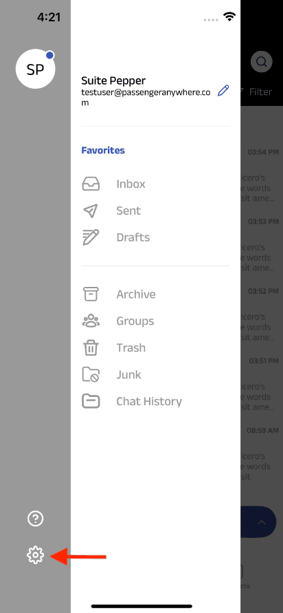 This will open the settings menu where you can add an account, create your signature, view privacy policy, view FAQ, and contact HostPepper team.