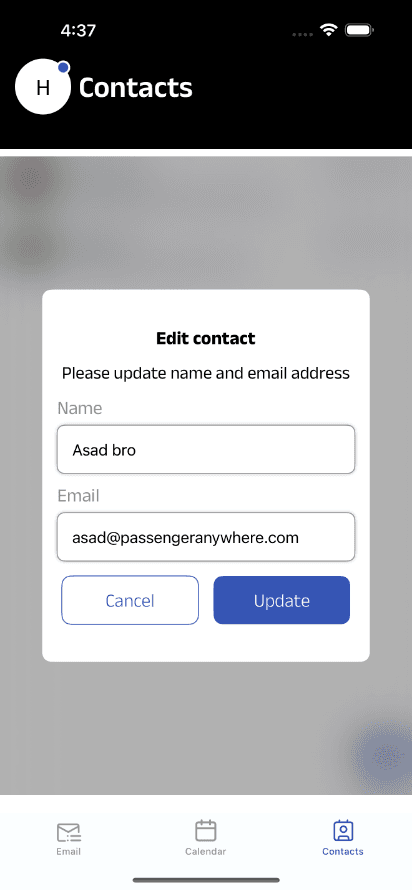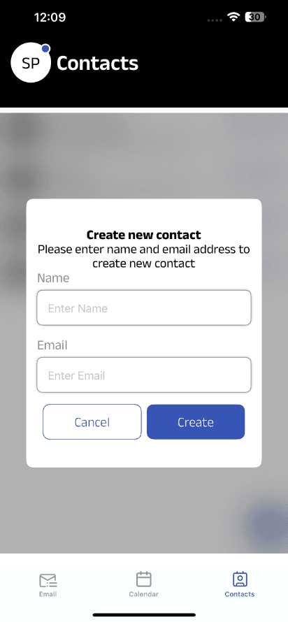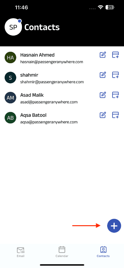 Tap the contact tab in the bottom navigation bar and click on plus on plus icon. an pop up will appear.